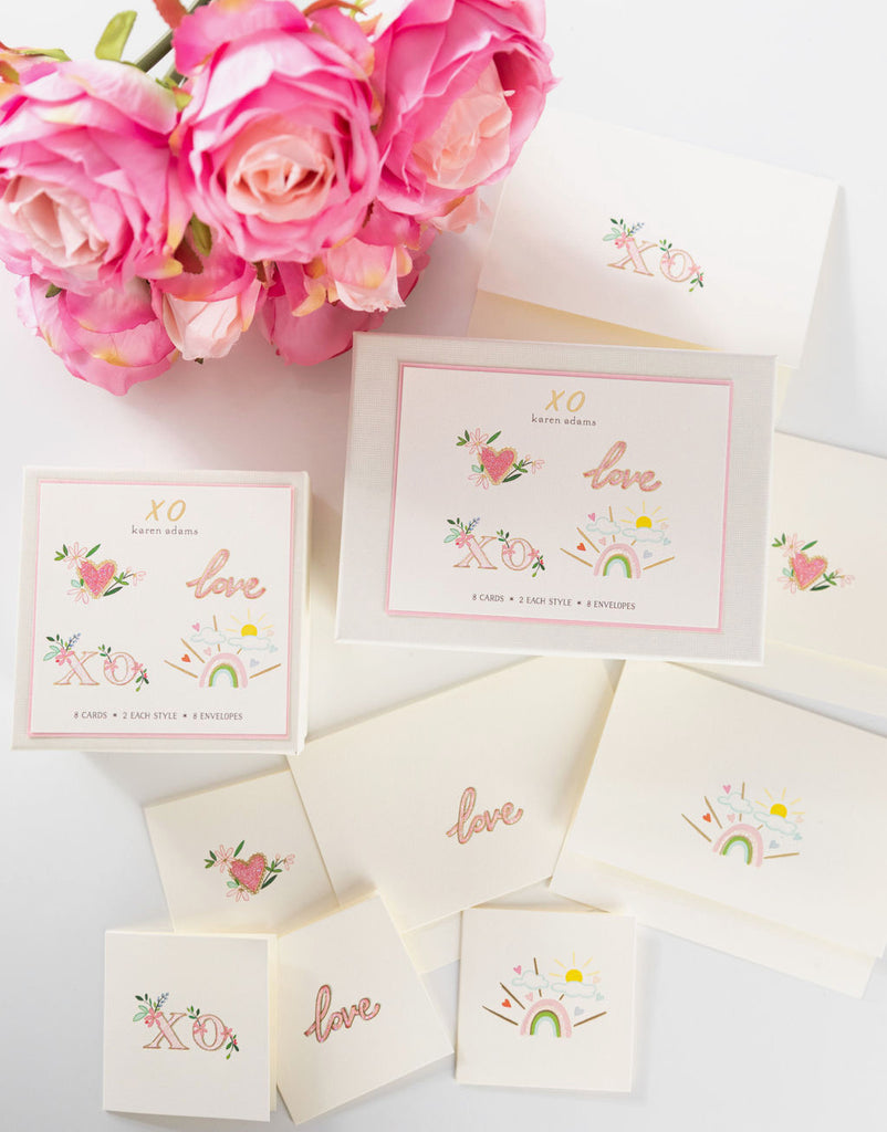 Our Flower Heart Gift Enclosure is printed and hand-glittered in Memphis, TN. Hand crafted artwork, full color ink printed on natural white paper, hand-glittered, and paired with a vellum envelope. Book-folded enclosure card, blank on the inside.