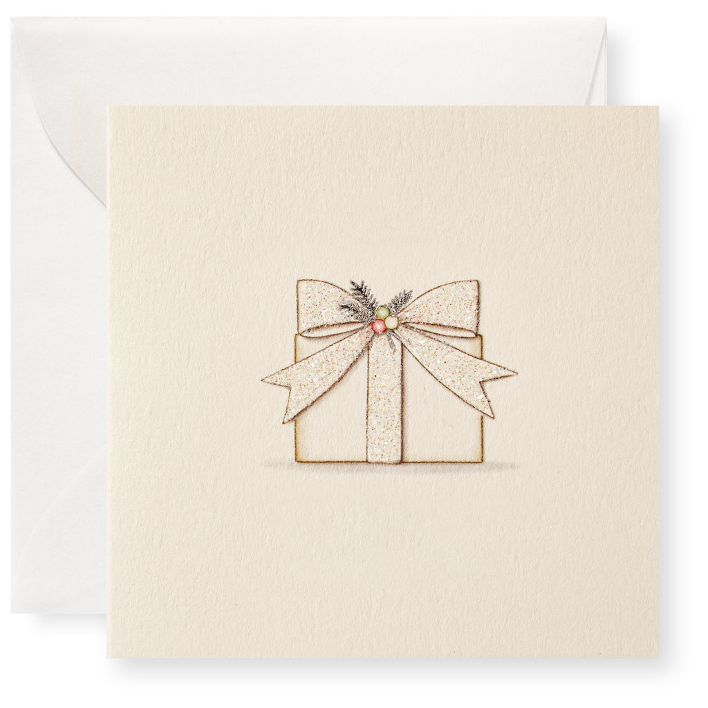 This set of eight natural white enclosure cards includes four different designs—are hand-glittered. Each is beautifully detailed, making a perfect addition to any gift. Book-folded enclosure cards, blank on the inside.