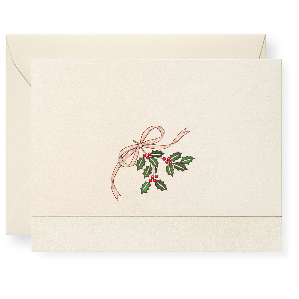 Celebrate the holiday season! This set of eight natural white note cards includes four different designs—each elegantly hand-embellished. They make a delightful hostess or house-warming gift or even for your own hand-written notes. Top-folded cards, blank on the inside.