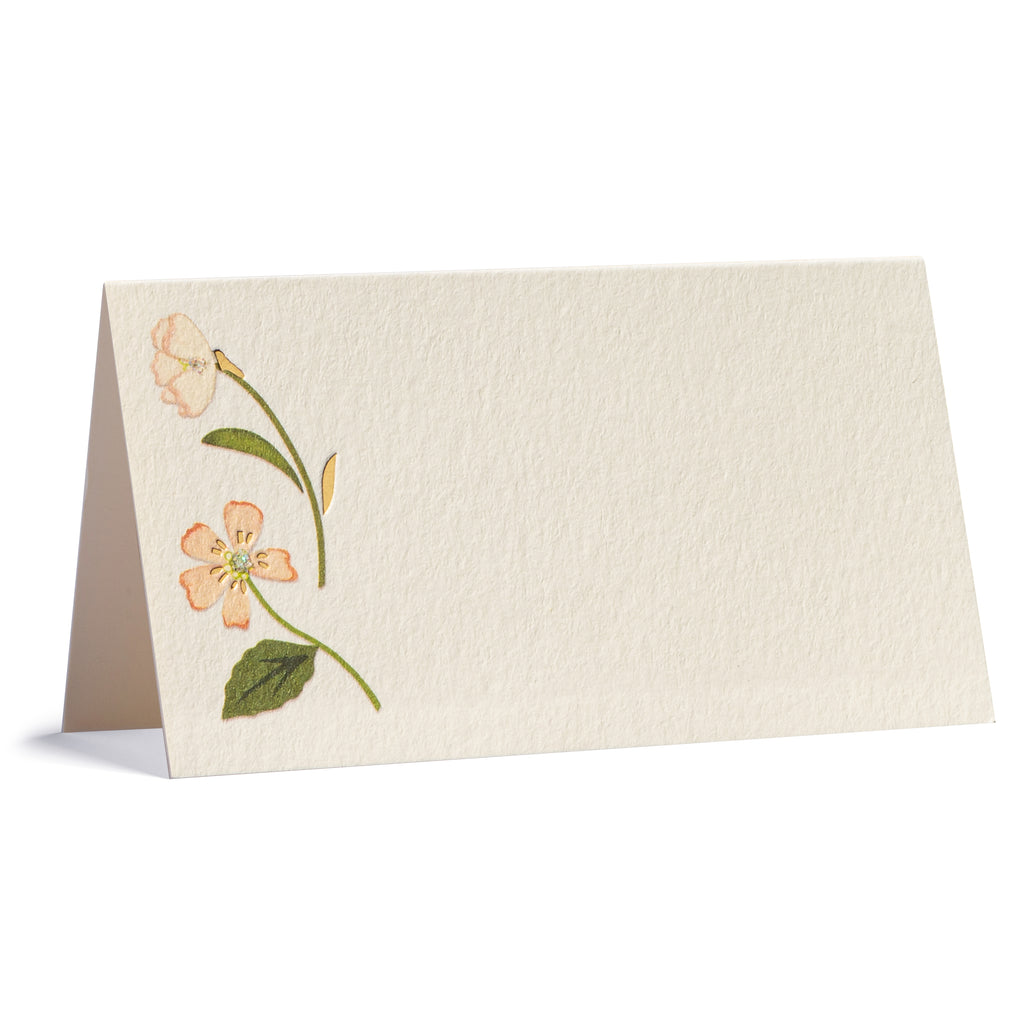 Add the charm to every table at your next event with this greenery design that shines. The gold glitter embellishments on the illustration against a natural white paper backdrop make these place cards a lovely keepsake.